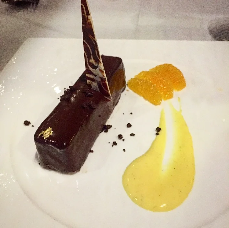 The Salted Caramel Milk Bar: Chocolate fleur del sel, Cayman sea salt caramel, dulce de leche cream and yuzu creme anglaise. The sea salt caramel on the inside is a great surprise.