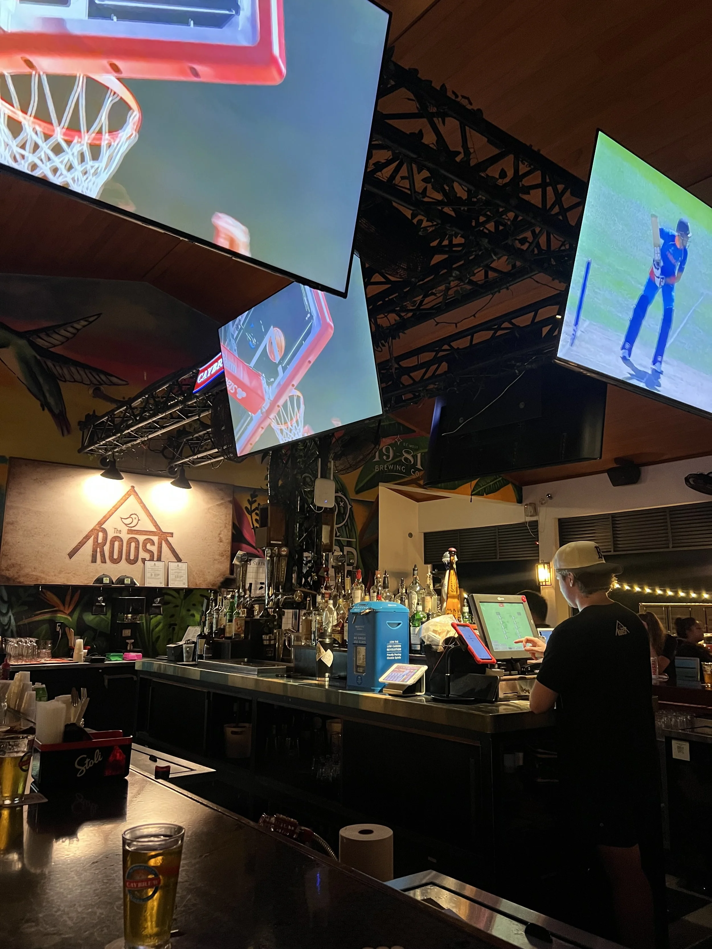 The Roost is ideal if you’re looking for a more relaxed, outdoor setting to watch the game. It is located at Pickleball Cayman which is home to 20 courts and a playground, so it has a mixed crowd. They have a selection of big screens, open-air seating and an easygoing atmosphere, making it a great alternative to packed indoor sports bars. Because of their mixed customer base sound is not usually on, but you can request a game or match to be turned on to a TV near you. You’ll see an eclectic range of games from pickleball, cricket, basketball, NFL and Premier League football (soccer).